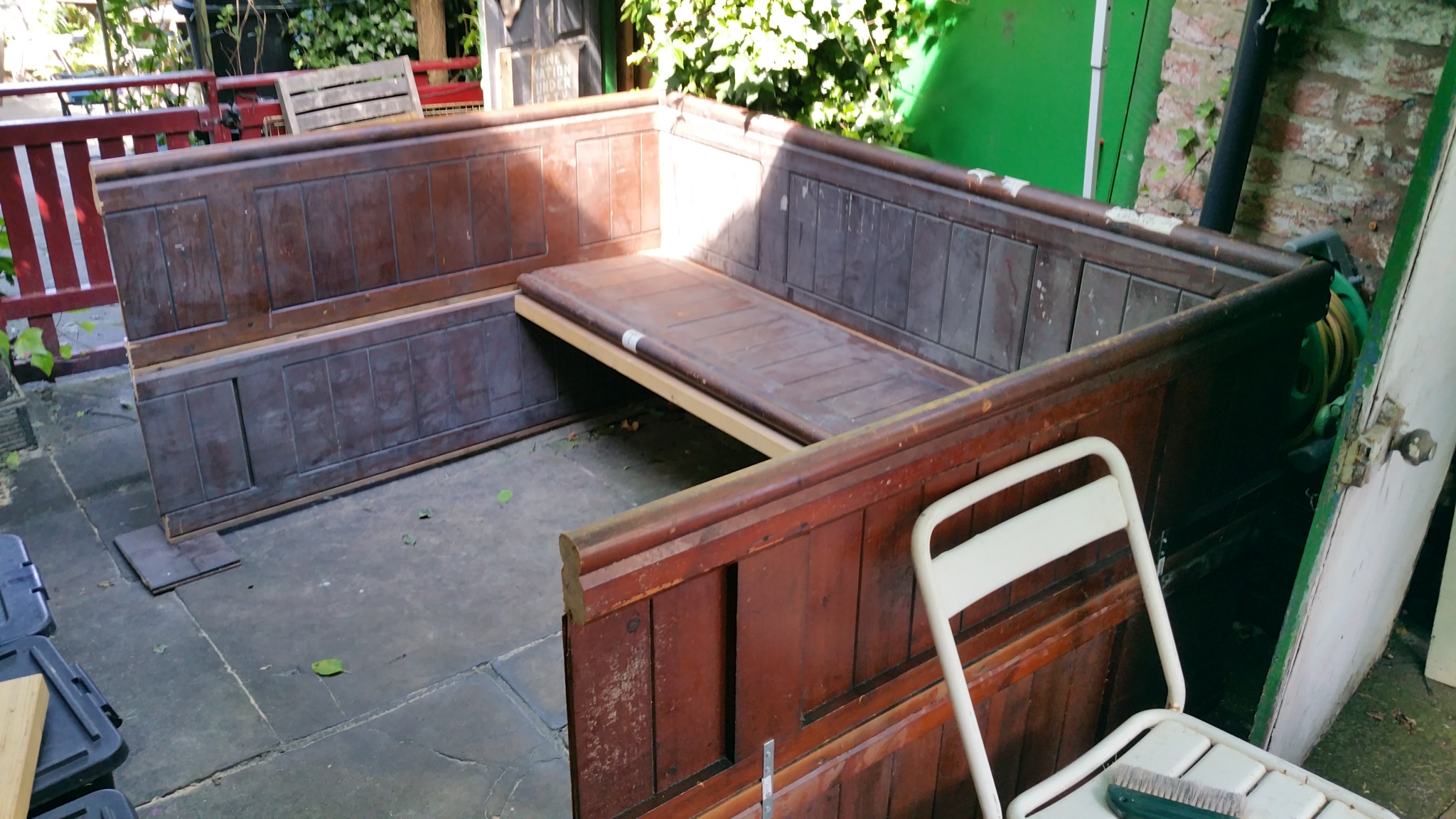 Using wood filler putty and a bloody good sanding down, i managed make the seating nice and smooth. Leaving some of the less dangerous cracks and holes to add charactor to the beautiful final finish.