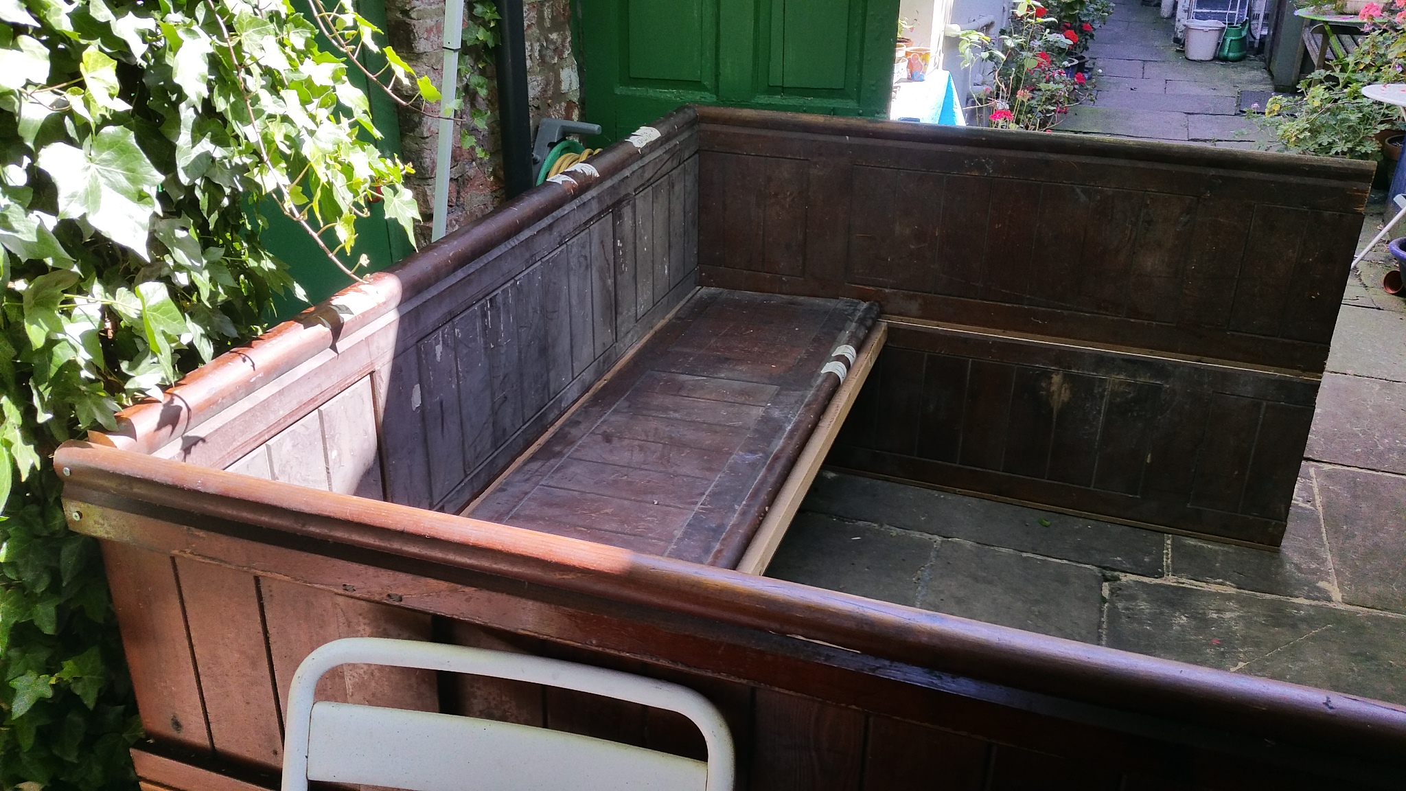 I decided that it would be a shame to spoil the lovely workmanship of the pews, so the theme should be within keeping of their original use. But with it needing to sit up to six people, this was going to be a challenge and a large one at that.