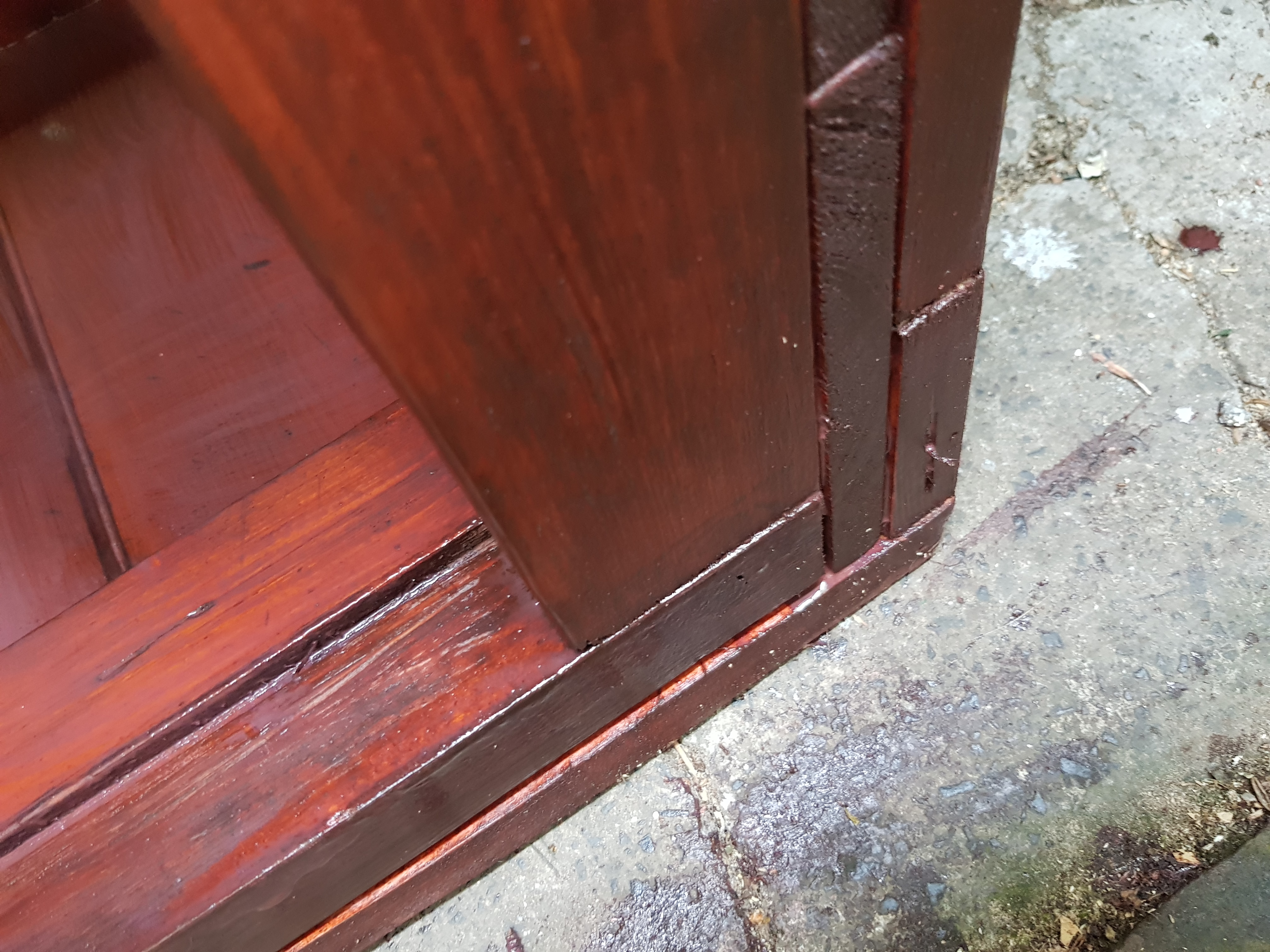 Next using enough wood stain to fill a kitchen sink, I gently layered up the colouring of the new wood to match the old. This took many hours, if not days. Patiently waiting for one layer to dry to add the next, eventually creating an even colouring to the whole piece. I’m not a very patient man, just so you know.