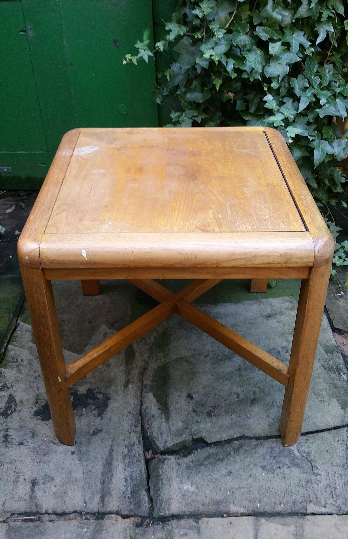 Picked up from an elderly women in my local community, this curved edged, danish style coffee table had a lovely tale on how it came into existence. Her father was a cabinet maker by trade. This lovely unique piece was his first every project he made while in training. This only adds more value to it in my humble opinion. This one will have to go to someone very special.